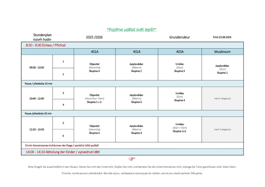 Stundenplan Kurse Bylinky und Petrklíče Schuljahr 2023/2024